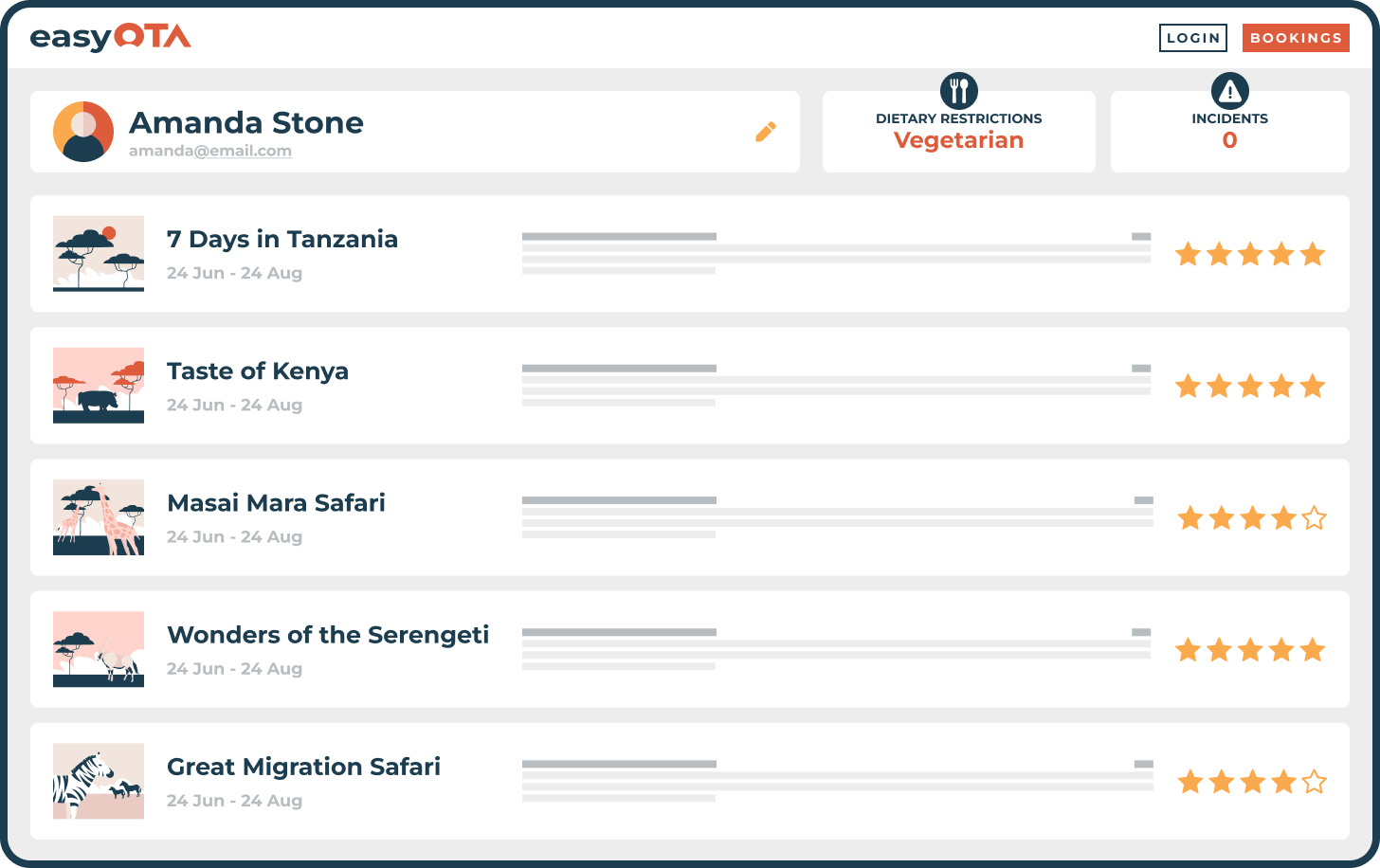 EasyOTA has been instrumental in supporting our business growth. As we set our sights on scaling, we recognised the importance of tools and systems that not only support but actively propel this expansion—and EasyOTA has delivered. Unlike other platforms we considered, EasyOTA is purpose-built for the safari industry, offering precisely the features we need to manage and grow our business seamlessly. Its intuitive interface has empowered our team to adapt quickly and work with greater efficiency. What distinguishes EasyOTA is their commitment to partnership. Their team is deeply invested in their customers' success, providing exceptional support every step of the way—especially during onboarding. No question is too small, and no challenge is too complex for them to handle. For safari industry business owners, EasyOTA is more than a platform—it’s a trusted partner in your growth journey. With their industry expertise and dedication to building solutions tailored to your needs, EasyOTA is an invaluable asset that sets your business up for long-term success.